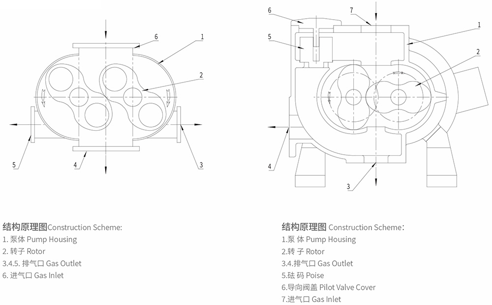 羅茨真空泵,由于采用數(shù)控加工中心加工,泵體與側(cè)蓋,側(cè)蓋與端蓋之間都采用“O”型圈密封,圓柱銷定位,零件互換性能好,維修方便,泵采用一個進(jìn)氣口,三個排氣口的結(jié)構(gòu)設(shè)計,便于用戶安裝使用。羅茨泵不能單獨使用,只有串聯(lián)前級泵才能使用,可選擇螺桿泵、油封泵、液環(huán)泵作為前級泵,值得一提的是,當(dāng)選用螺桿泵、液環(huán)泵作為前級泵時,特別適合抽除大量可凝性氣體的場合。